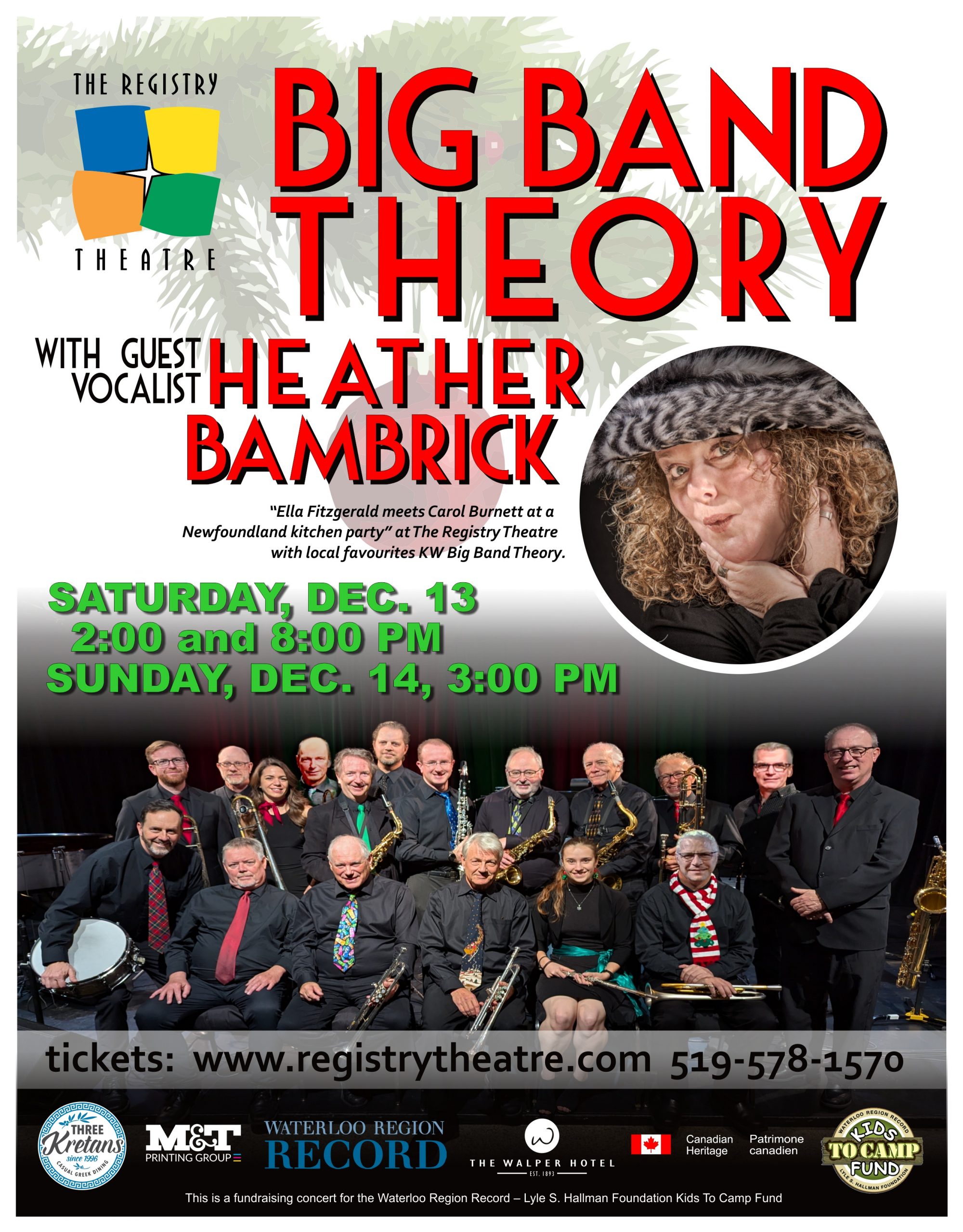 The Big Band Theory had its genesis in Kitchener-Waterloo, Ontario, without any clear idea where this project might end up. And… WOW! what an explosion of sound when seventeen of Waterloo Region’s most talented jazzers showed up for that first rehearsal in October 2011. BBT is now in its fourteenth season of music making with a deep repertoire of period music from the swing era (Benny Goodman and Count Basie), contemporary big band arrangements (LAs Big Phat Band), 70s horn bands (Earth, Wind and Fire, Tower of Power). With three albums under their belt (“Evidence”, featuring Don Thompson and “A Swinging Joy”, Christmas and “Suite Canada”, all Canadian Composers and Arrangers) the KW Big Band Theory is an exciting band to hear live. Come check it out, and be prepared to be blown away.